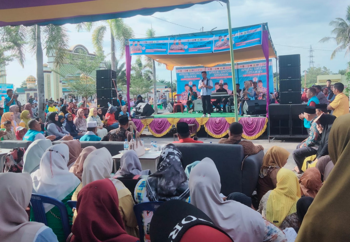 ROHIL – Petahana Rohil Afrizal Sintong SIP MSi berorasi di halaman rumahnya, di jln Putri Hijau Sintong. Kecamatan Tanah Putih Kabupaten Rohil. Minggu 20 Oktober 2024.