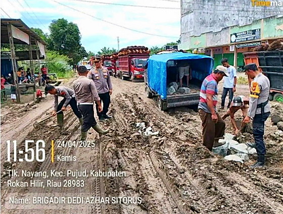 Salah satu potret yang mencuri perhatian adalah aksi Brigadir Dedi Azhar Sitorus bersama rekan-rekannya, yang tanpa canggung terjun ke medan berlumpur mengangkut batu belah untuk menambal titik-titik kerusakan yang membahayakan pengguna jalan. Kegiatan tersebut berlangsung di wilayah Kepenghuluan Nayang, Kecamatan Pujud, Kabupaten Rokan Hilir.