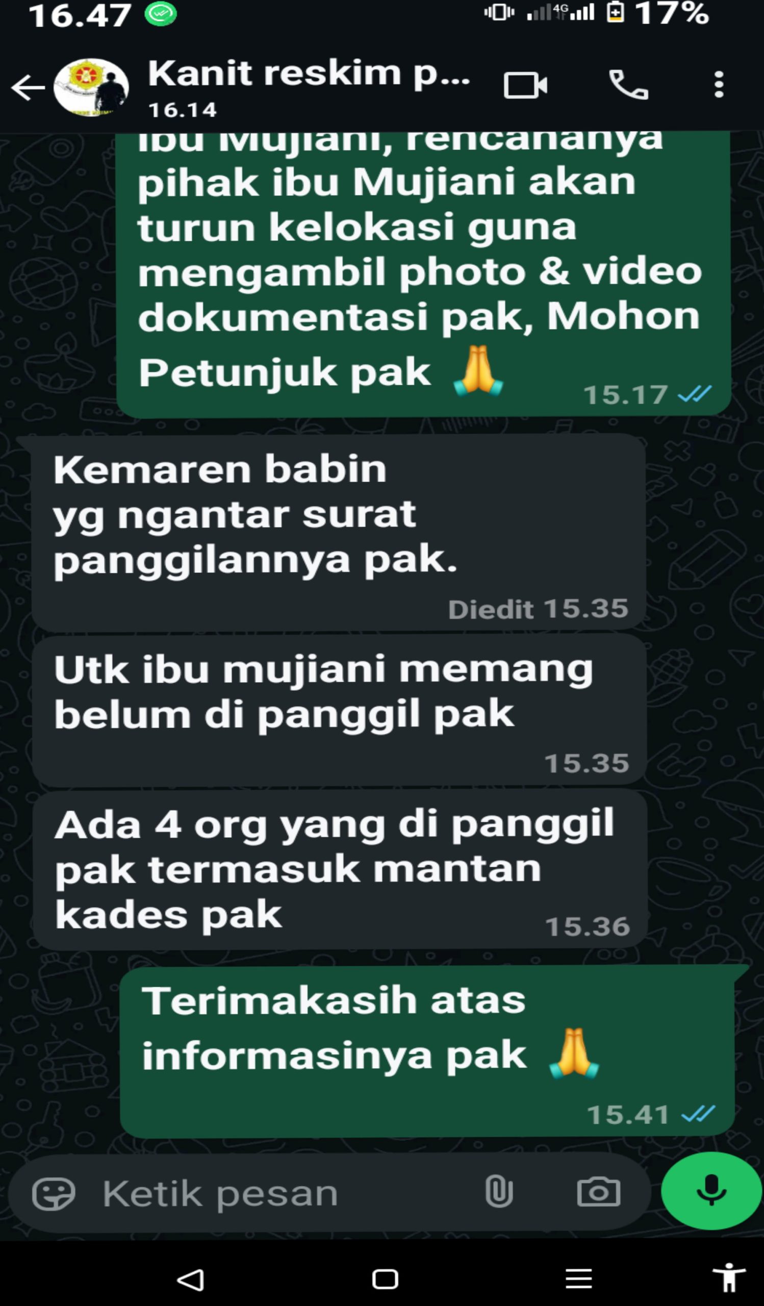 Dalam pengaduannya, Mujiani menyebutkan bahwa lahan kebun sawit seluas 2 hektar miliknya telah diserobot oleh seseorang bernama Bambang Suhermanto sejak tahun 2023.