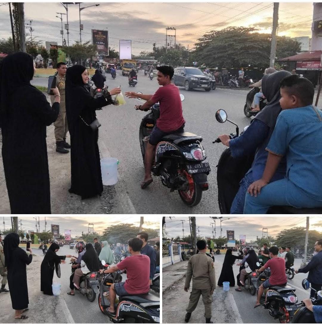 Bin-ri.id-Rokan Hilir- Istri wakil bupati rokan hilir indah septiyani berbagi takjil gratis di bulan suci Ramadhan 1446 H. 2025, kepada Masyarakat di depan halaman rumah nya di simpang ujung tanjung kecamatan tanah putih jumat, 7/maret/2025.