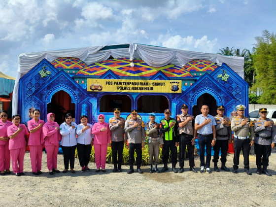 Rohil – Kapolres Rohil, AKBP Isa Imam Syahroni, bersama Ketua Bhayangkari Cabang, Ny. Fikih Isa, dan rombongan mengunjungi Pos Pengamanan arus mudik Lebaran Idulfitri 1446 H, Polres Rohil, yang berada di perbatasan Riau–Sumut, tepatnya di Simpang Martabak, Kecamatan Bagan Sinembah, pada Sabtu, 29 Maret 2025, pukul 14.30 WIB.