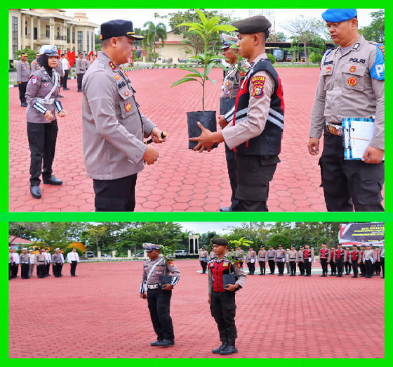 Menariknya, apel pagi tersebut juga dirangkaikan dengan kegiatan pemberian bibit pohon kepada personel yang berulang tahun. Dua personel yang menerima bibit pohon jenis Mangga Thailand ialah Bripda Fauzan (20) dan Bripka Zepriwandi (42).