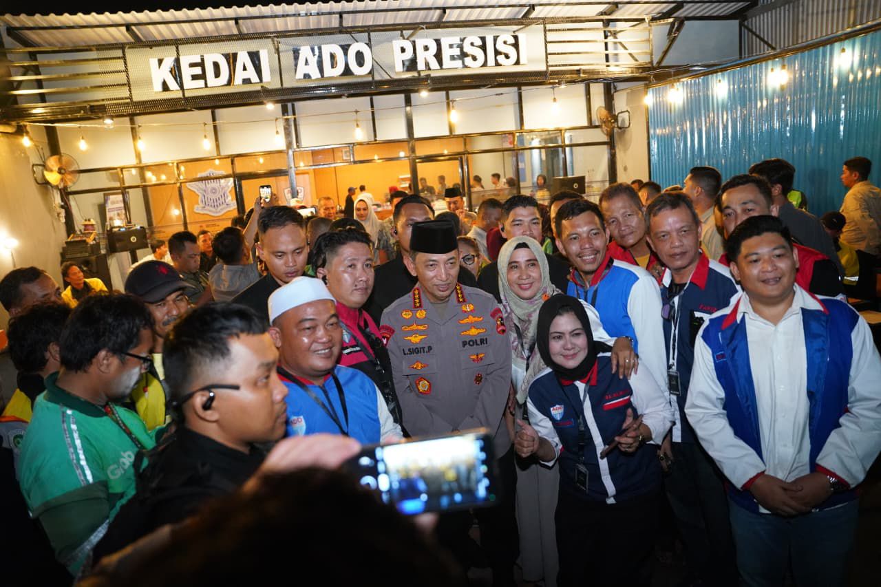 PALEMBANG — Kapolri Jenderal Polisi Drs. Listyo Sigit Prabowo, M.Si. menyambangi komunitas pengemudi ojek online di Kedai Ado, Jalan POM IX Kampus Palembang, Sabtu (7/3/2026) malam. Dalam suasana santai, Kapolri berdialog langsung dengan para driver yang tergabung dalam Asosiasi Driver Online (ADO) Palembang untuk mendengarkan aspirasi dan pengalaman mereka di lapangan.
