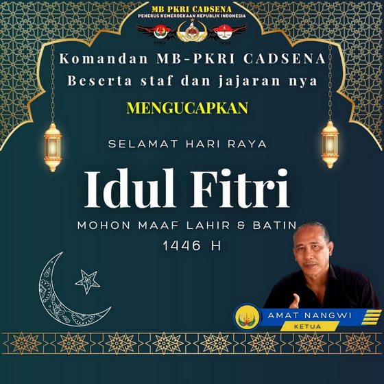 Muara Enim – Komandan MB-PKRI CADSENA Amat Nagwi (JANGKOK) Muara Enim beserta jajaran dan media BIN RI muara Enim mengucapkan Selamat Hari Raya Idul Fitri 1446 H. 30/03/2025