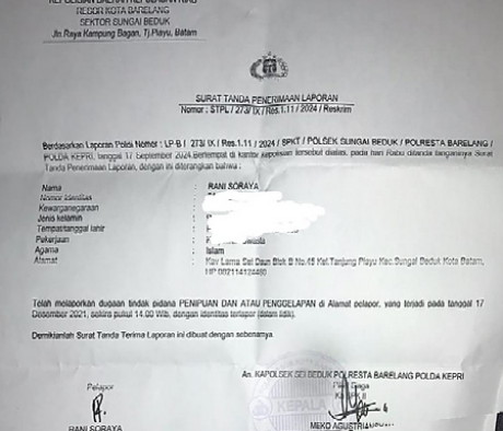 Dengan nomor : LP-B/273/IX/Res.1.11/2024/SPKT/Polsek Sungai Beduk/Polresta Barelang/Polda Kepri.