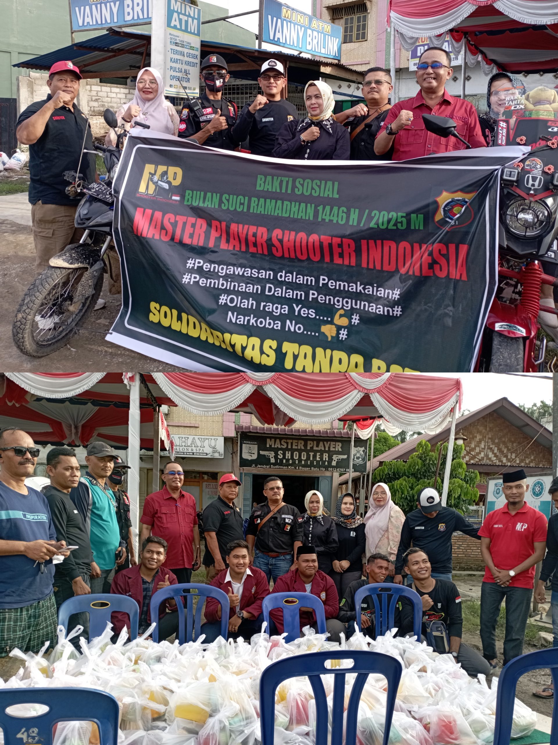 Kegiatan sosial ini digelar di depan kantor sekretariat MP Shooter Player di Jalan Jenderal Sudirman KM 4 Bagan Batu , kelurahan Bahtera Makmur Kota, kecamatan Bagan Sinembah , kabupaten Rokan Hilir – Riau.