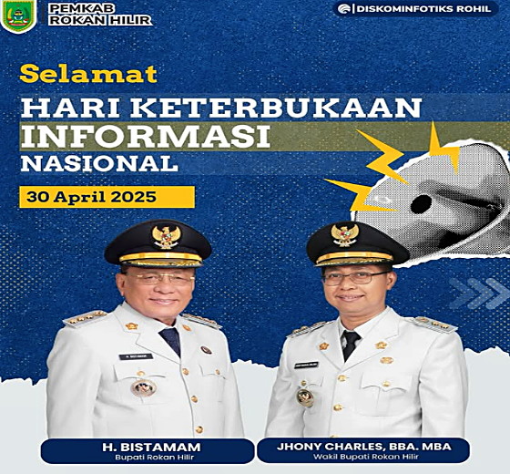 Melalui unggahan resmi Dinas Komunikasi, Informatika, Statistik dan Persandian (Diskominfotiks) Rokan Hilir, Bupati Bistamam dan Wakil Bupati Jhony Charles, menyampaikan ajakan kepada seluruh elemen masyarakat untuk bersama-sama mewujudkan keterbukaan informasi sebagai fondasi tata kelola pemerintahan yang demokratis dan responsif. (30/4/25).