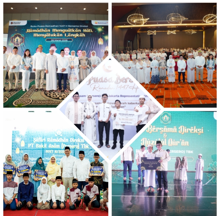 Tanjung Enim, 16 Maret 2026 –* Dalam rangka mempererat silaturahmi sekaligus meningkatkan kepedulian sosial kepada masyarakat, PT Bukit Asam (Persero) Tbk atau PTBA menggelar rangkaian kegiatan Safari Ramadan 1447 H di sejumlah unit operasi Perusahaan, antara lain Tarahan Port, Kertapati Port, Tanjung Enim Mining Site, Jakarta Representative Office kemudian diakhiri di Unit Pertambangan Ombilin (UPO).