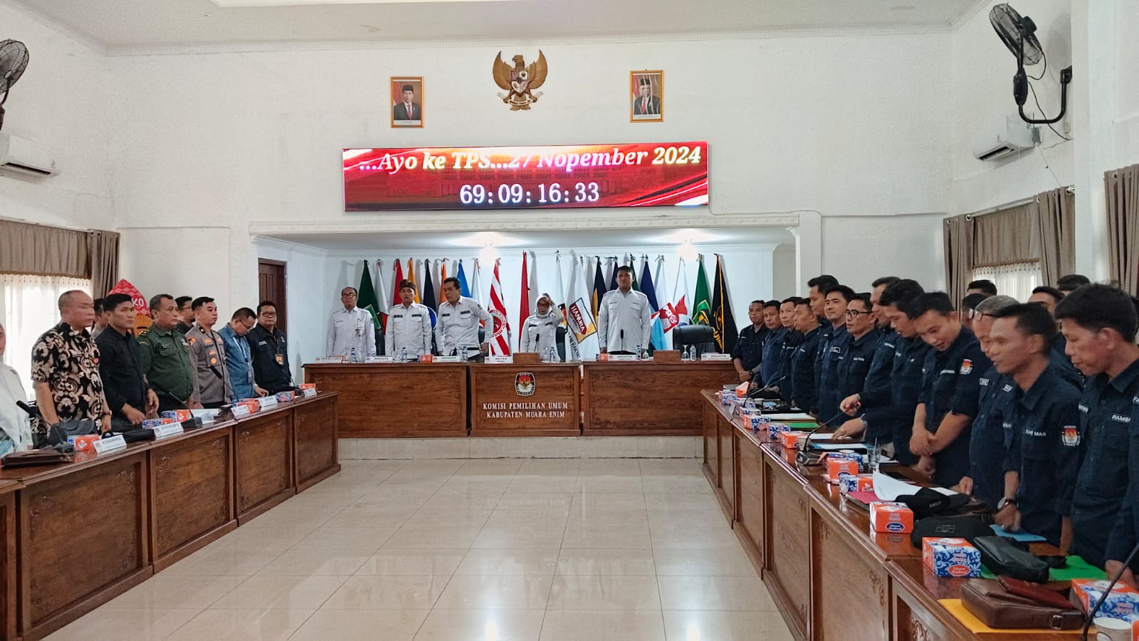 Kegiatan ini dihadiri oleh Ketua KPUD Kabupaten Muara Enim, Rohani, SH, dan para anggotanya. Turut hadir Ketua Bawaslu Kabupaten Muara Enim, Zainudin, AP, M.Si, dan anggota Bawaslu. Kapolres Muara Enim, AKBP Jhoni Eka Putra, SH, SIK, MSi, diwakili oleh Kabag Ops Polres Muara Enim, Kompol Handryanto, SH. Dari pihak TNI, Dandim 0404 Muara Enim diwakili oleh Pabung Mayor Broto. Sementara itu, Kadin Capil Muara Enim, Risman Effendi, Kepala Posbinda Kapten Feri, dan perwakilan dari Kesbangpol Muara Enim, Kasi Analis Nurhana, Ketua dan Anggota PPK se-Kab.Muara Enim Perwakilan dari masing – masing Paslon Pilbup juga turut menghadiri rapat penting ini.