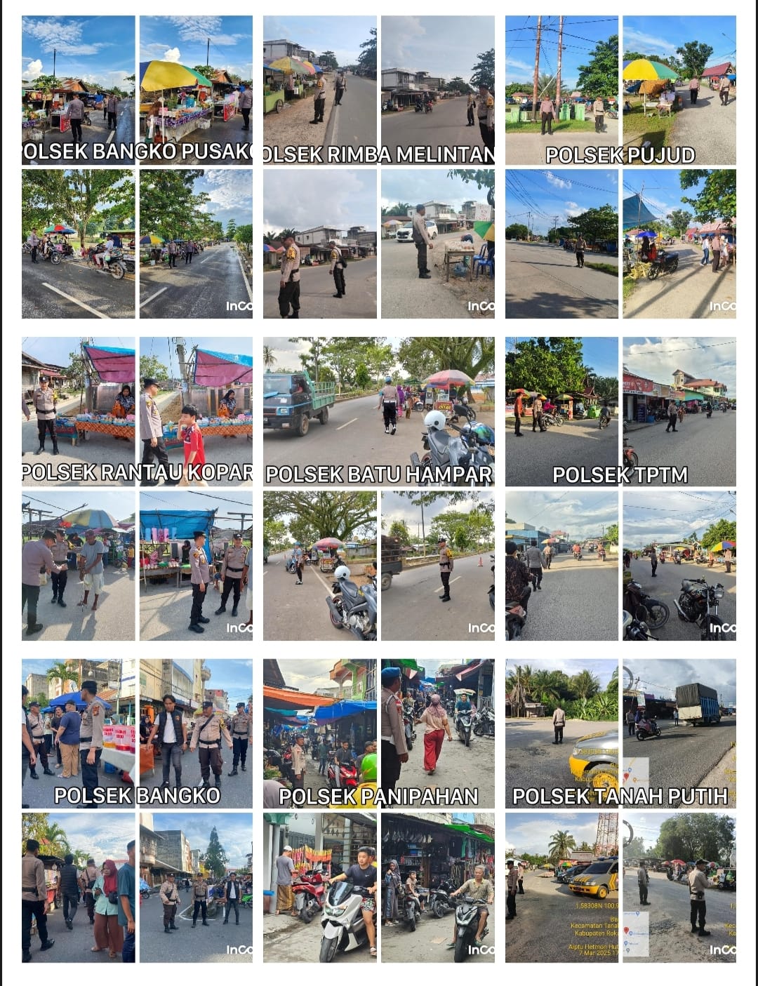 Telah dilaksanakan Kegiatan rutin pengamanan dan pengaturan arus lalin di pasar Ramadhan oleh Personel Piket Ops Tertib Ramadhan, personil piket Penebalan di Wilkum Polres Rokan Hilir dan personel,” ujarnya.