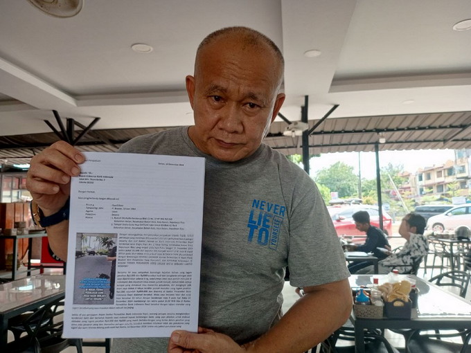 Yusril Koto memperlihatkan surat aduan yang akan dikirimkan resmi ke Gubernur BI dan Ombudsman Kepri – Yusril Koto, seorang warga Batam sekaligus penggiat media sosial, melayangkan laporan resmi kepada Gubernur Bank Indonesia terkait pengalaman buruk yang ia alami di Kantor Perwakilan Bank Indonesia (BI) di Batam Center.