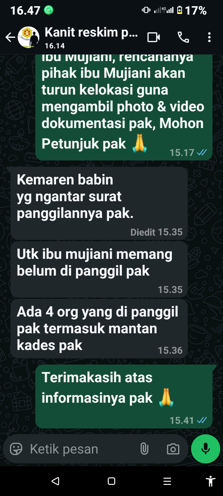 “Untuk ibu Mujiani memang belum diantar surat panggilannya,” ujar IPDA Yusmar singkat.